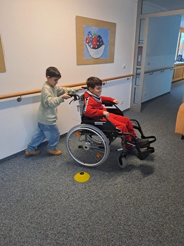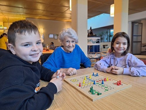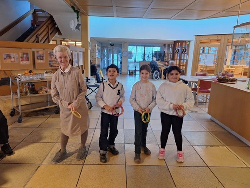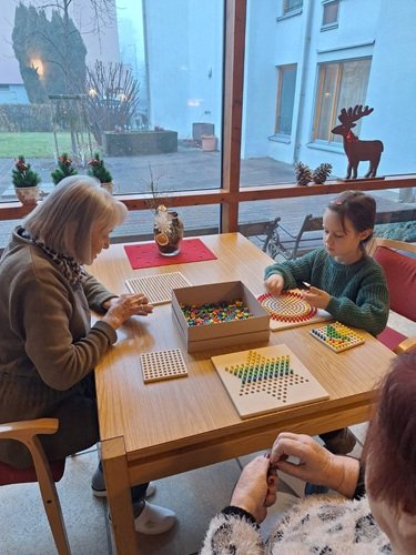 Am 10. Dezember durften die Kinder unter der Anleitung von Melanie und Jakob den Pflegeberuf näher kennenlernen. Dabei erfuhren die Schüler:innen unter anderem, wie es sich anfühlt, nicht mehr gut sehen, hören oder sich bewegen zu können. Außerdem spielten die Kinder gemeinsam mit den Bewohner:innen verschiedene Gesellschaftsspiele, halfen bei Geschicklichkeitsübungen oder lasen ihnen vor.