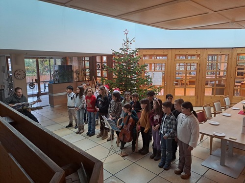 Als kleines Dankeschön bedankte sich die Klasse zwei Wochen später im Pflegeheim mit einem Weihnachtskonzert. Die Kinder sangen verschiedene Lieder und Mirjam spielte auf ihrem Cello vor. Zum Abschluss überreichten die Schüler:innen ihre gezeichneten Erlebnisse vom vergangenen Besuch.